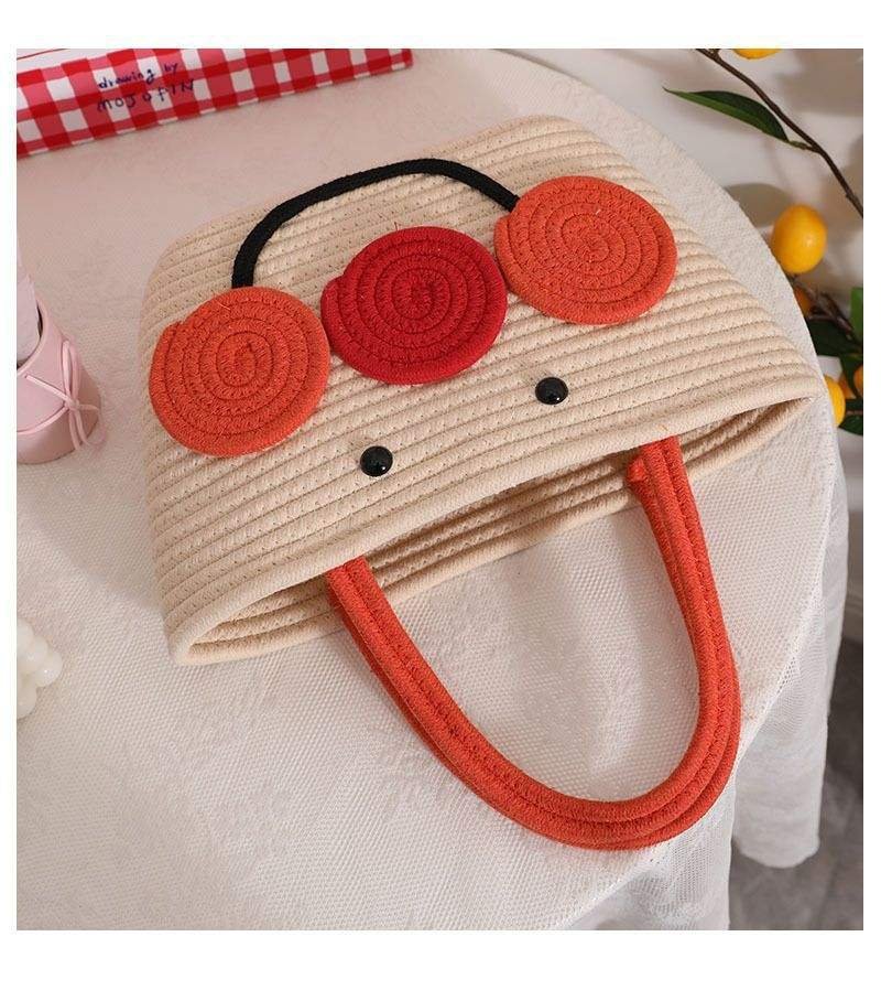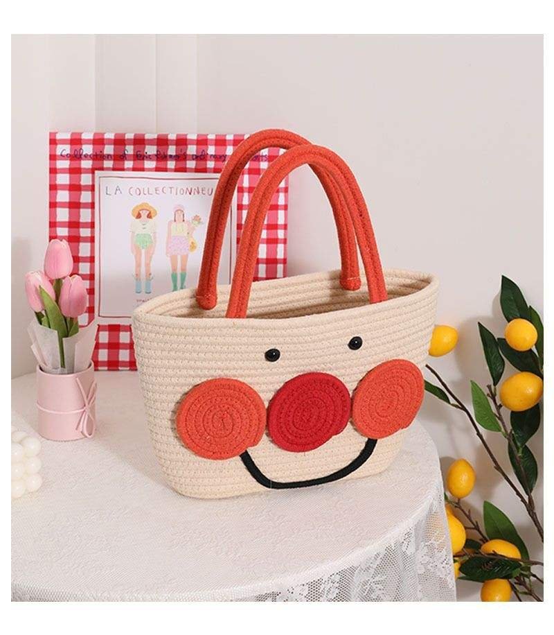Cute Anpanman cartoon hand-held straw woven bag. Lightweight, trendy “ugly cute” basket style women’s bag for casual use.