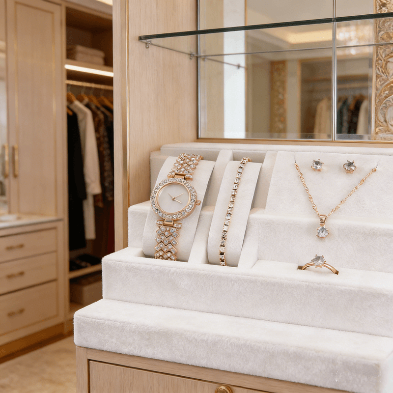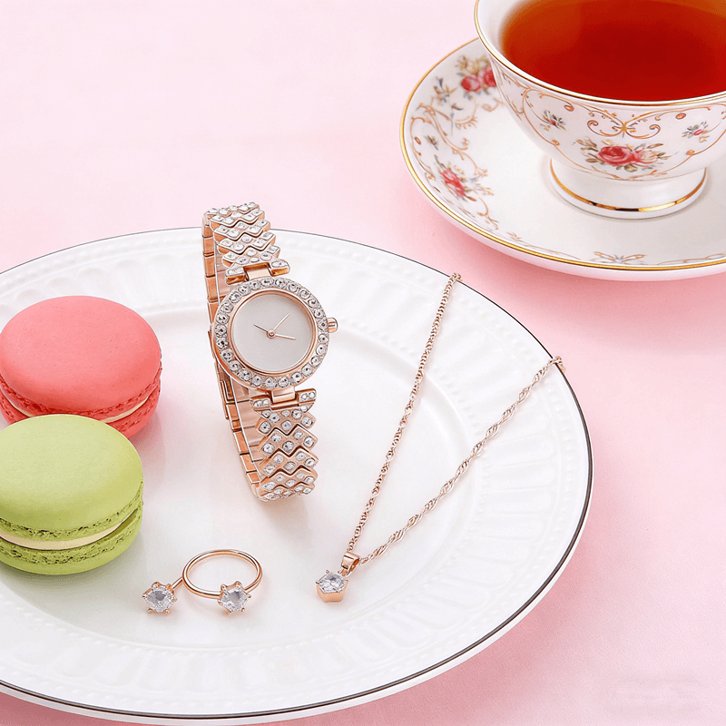 The matching accessories complete the look, making this set a perfect all-in-one fashion statement. Whether you’re buying it for yourself or as a gift, this fashionable watch set delivers beauty, quality, and sophistication at an affordable price.